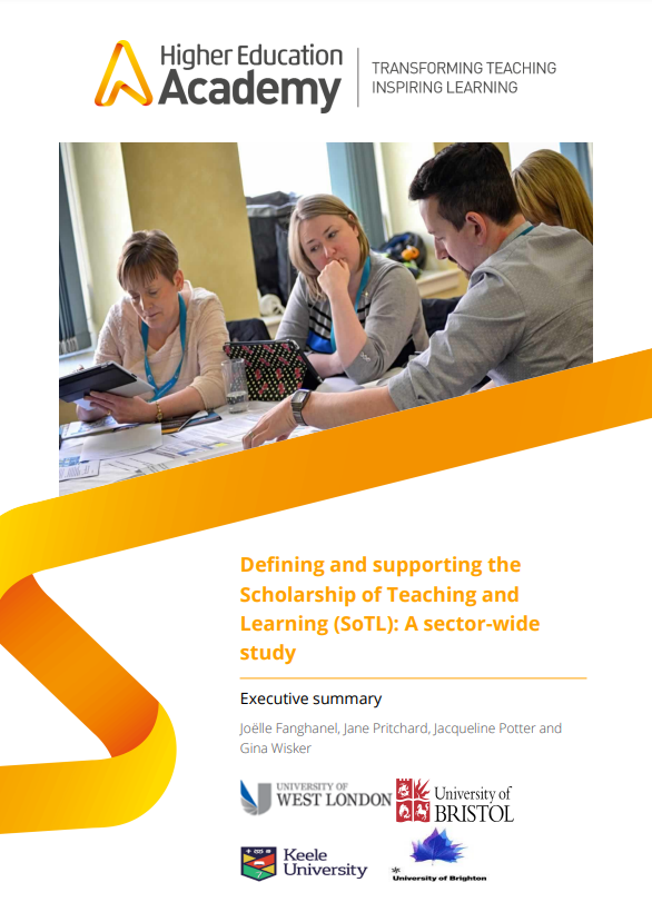 Fanghanel, J., Pritchard, J., Potter, J. and Wisker, G. (2016) Defining and Supporting the Scholarship of Teaching and Learning (SoTL): A sector wide study. https://www.advance-he.ac.uk/knowledge-hub/defining-and-supporting-scholarship-teaching-and-learning-sotl-sector-wide-study